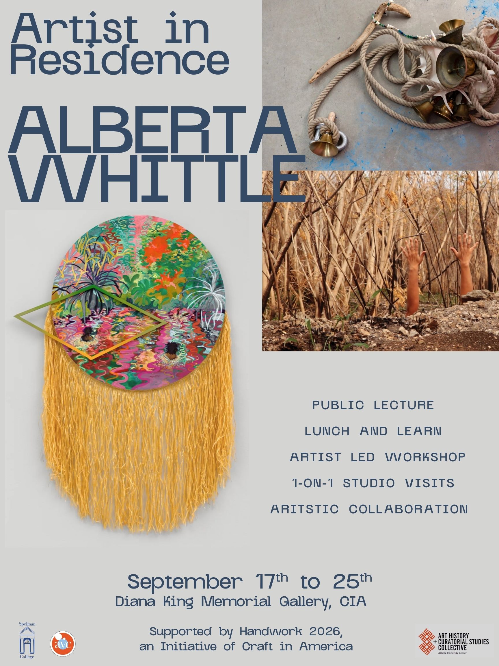 Handwork: Celebrating American Craft 2026 will support an artist residency at Spelman College; an immersive opportunity to collaborate, experiment and create. Alberta Whittle works across painting, film, performance and textiles illustrating a nuanced approach to the notion of craft.
