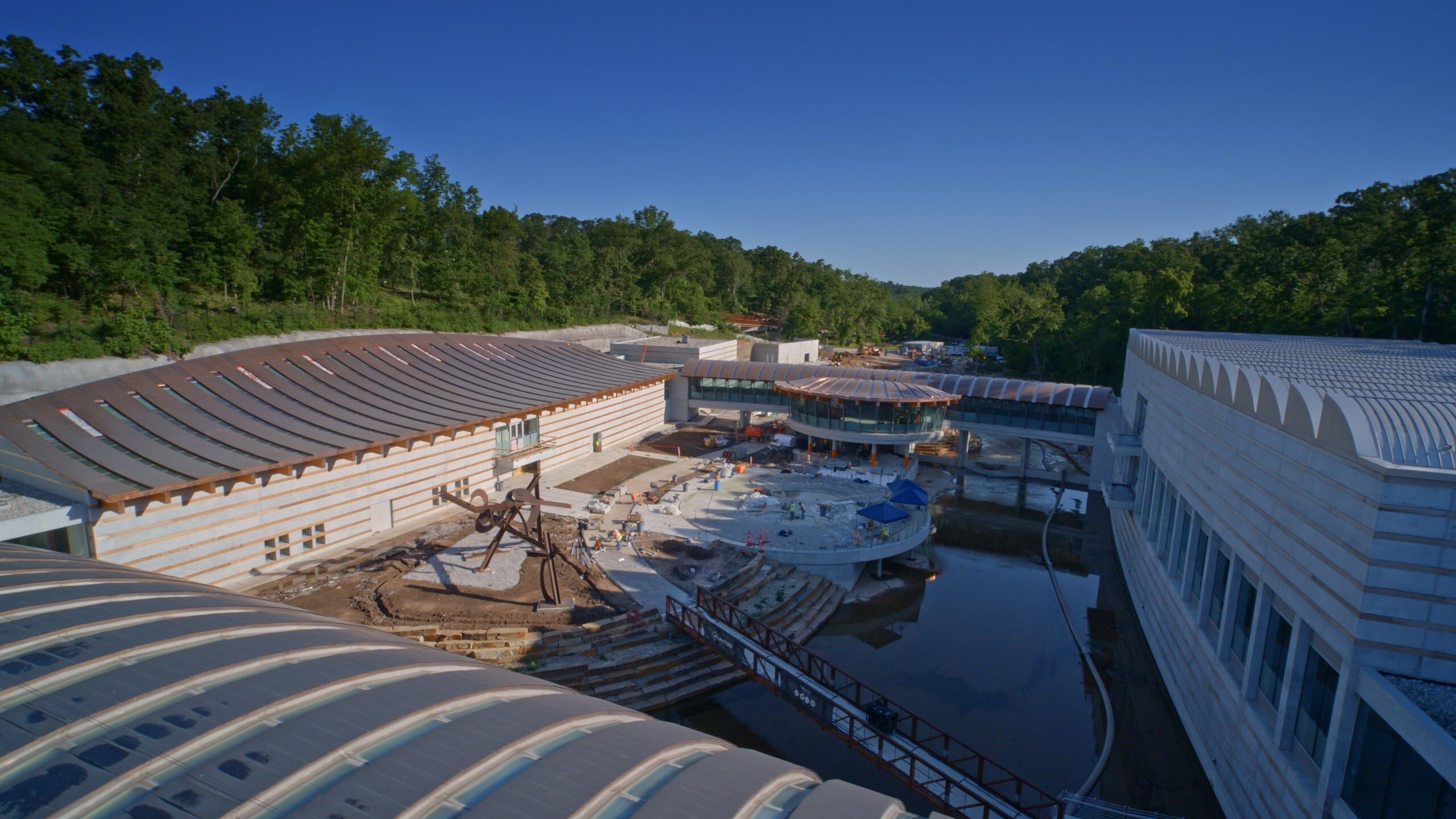 ​​Aerial view of Construction of Crystal Bridges Museum of Art Expansion. Photography by Edward C. Robison III, courtesy of Crystal Bridges Museum of Art.