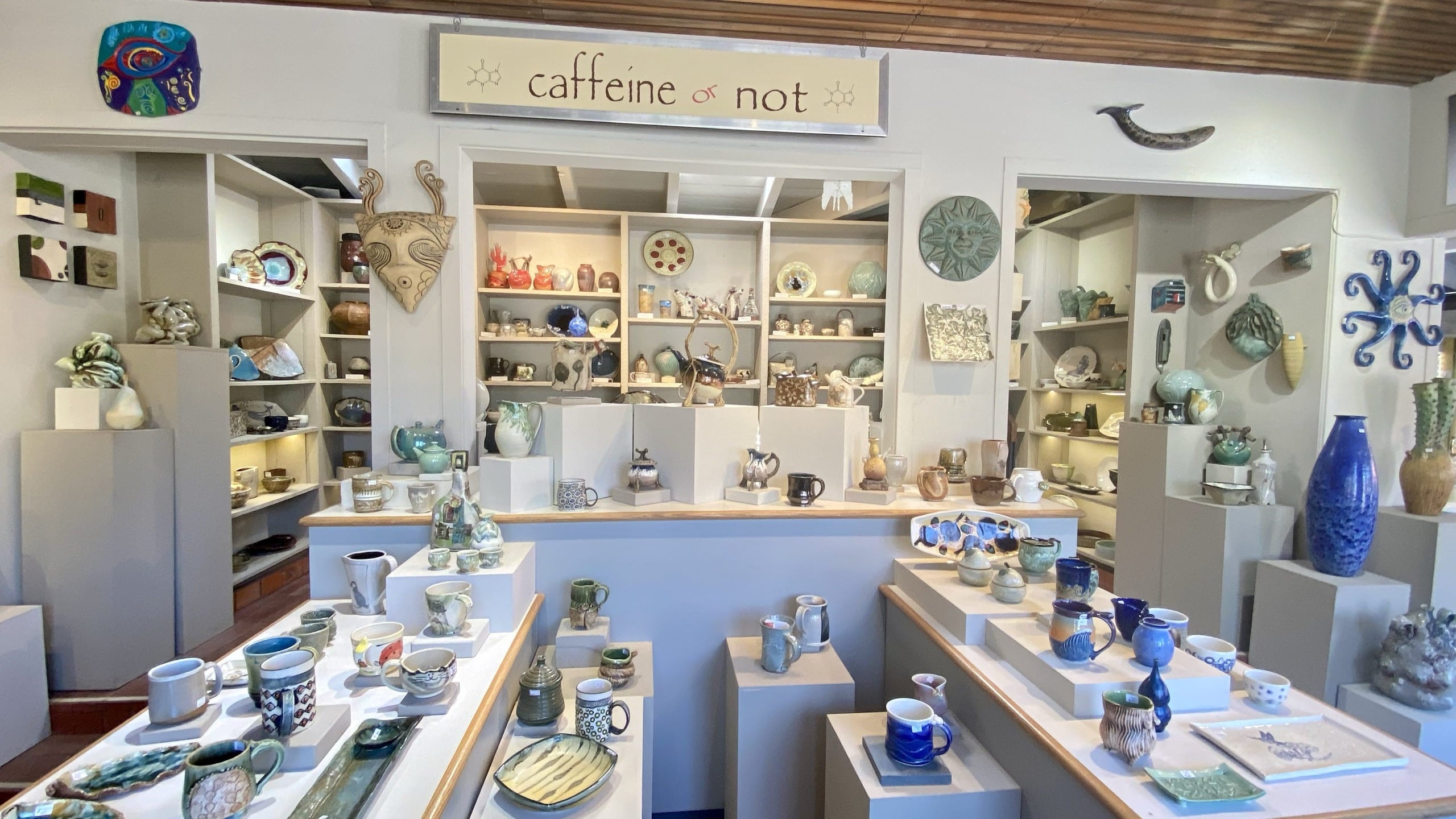 Studio 29 includes a gallery, a working studio with wheels, and both electric and gas kilns. Visitors can explore a wide range of handmade functional and decorative ceramics and often watch potters at work. The Guild presents rotating themed exhibitions in its central gallery, and its large semiannual sales each June and November fill the Village Arts Center patio with thousands of pieces. Members also teach classes for adults and children, and the Guild hosts annual workshops.